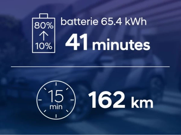 Sur borne de recharge rapide, KONA Electric ne nécessite que 41 minutes pour passer de 10% à 80% de charge. De quoi vite repartir sur la route.